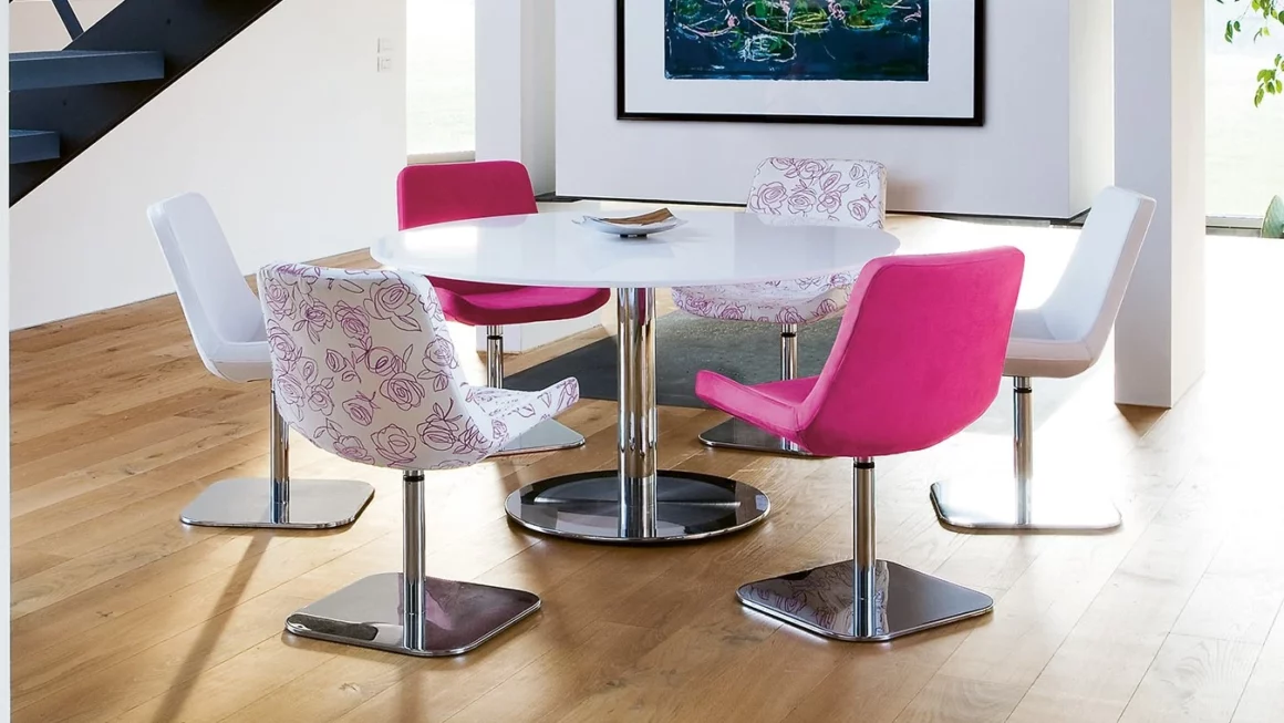 Timeless in design, thin upholstered with injected foam and combined with best sitting comfort – that offers the chair HE. Beautiful fabrics or leather as well as different bases are composing the design. HE fits to every table and in many rooms.